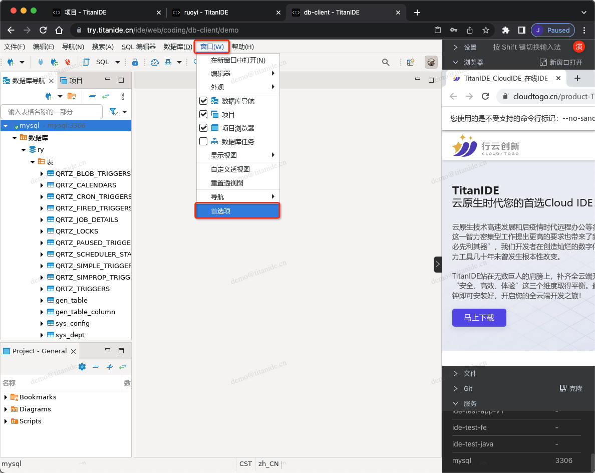 最近,我在使用 TitanIDE 开发云原生应用的时候,需要一个客户端操作数据库,我们一般都会在自己的电脑安装 NaviCat、Workbench、DBeaver 等数据库客户端工具。这些工具都挺好用的。不过呢,NaviCat 想说爱你不容易,虽然MySQL Workbench 是免费的,但是仅支持 MySQL。最后找到了 DBeaver,发现 DBeaver 通过 JDBC 连接到数据库,可以支持几乎所有的数据库产品,还开源、免费。但问题是,TitanIDE 是运行在云端,通过浏览器来访问的,而以上工具皆运行在本地桌面操作系统内部,一个在云端,一个在本地,TitanIDE 和 DBeaver 是怎么坠入爱河的呢?且听我娓娓道来......